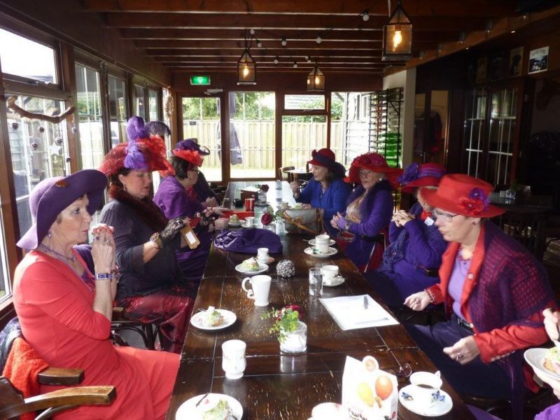 De St. Hubertustocht in Epe werd door verschillende Chapters van de Red Hat Society bezocht.